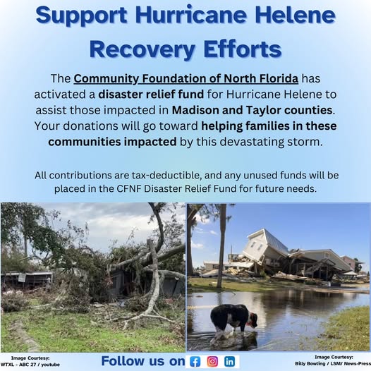 The Community Foundation of North Florida’s board approved three $7,000 grants to the American Red Cross–Capital Area Chapter, Second Harvest of the Big Bend and United Way of the Big Bend.